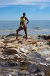 At the rocky beach...